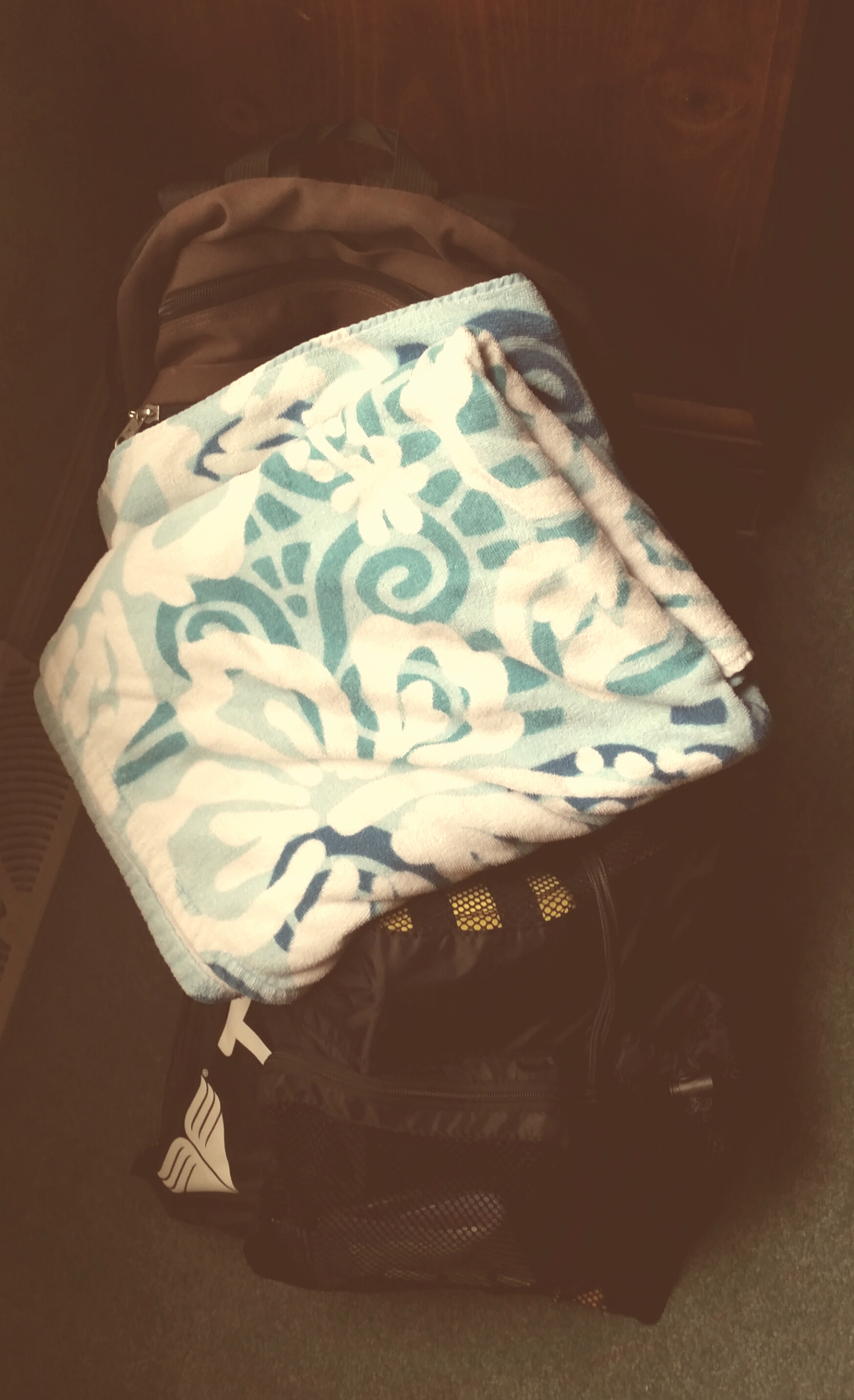 And of course, the gym bag… Sometimes this is the hardest thing that I deal with everyday because I know how important it is to workout and do things for myself. But sometimes as a mother, the least important thing in your life becomes yourself when it comes to your family. And as much as I’ve talked about how swimming helps relax me and calm me down, sometimes that is the furtherest thing from my mind. But in all fairness, despite going to bed that night at 12:30 a.m., I did actually get up at 7 a.m. the following morning and go swimming – one really long, relaxing, calming swim in a pool that was almost all to myself.
