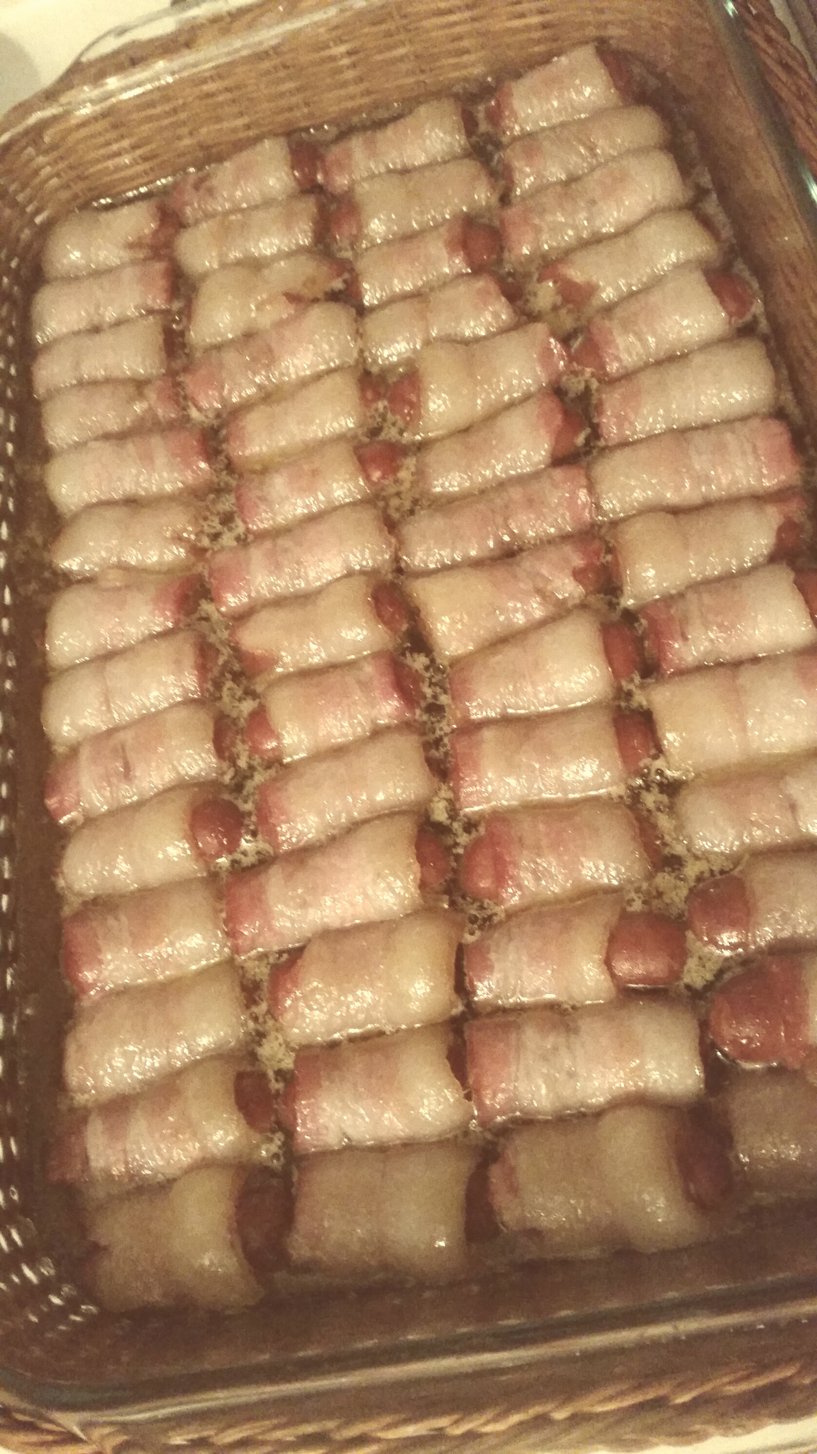 The wienies wrapped in bacon are also related to the party we’re attending. While I didn’t finish them completely, I prepared them as much as I could to actually try to be ahead of the game since Tim and I are getting out of the house without the kids on a Saturday afternoon for a couple hours to see a