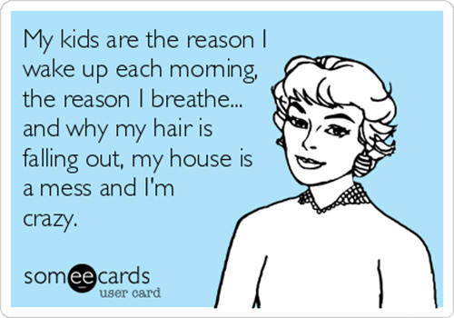 Or the days when I probably resemble a mad woman with my hair hanging in my face, sweat dripping down the sides of my face, desperation most likely pouring out of my eyeballs, as my children are pulling another one of their rapid fire barrage of: